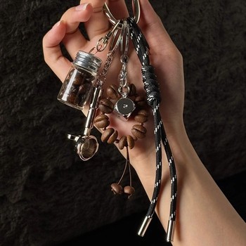 REWIN Customisable Vintage Coffee Bean Purse Pendant Black Woven Rope Tassel Bag Charms Bulk