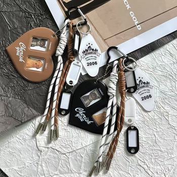 REWIN Customisable Bag Charms Korean Ins MIU Style Big Heart Card Holder Name ID Tag Pendant Woven Rope Purse Charm Accessories
